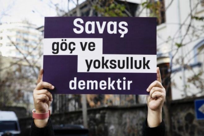 “feministler olarak tabii ki enternasyonalist düşünmemiz gerekiyor. filistin konusunda talep çok net: israil ile tüm ilişkiler kesilsin! suriye ile ilgili konu daha karmaşık ortak bir akılla tartışılmaya muhtaç olabilir. kendi önerimi yazayım: türkiye suriye’nin iç işlerine karışmaktan vazgeçsin. Oraya dair planlar, yıkılmış bir ülkenin yeniden inşasından kâr etmek isteyenleri memnun edecektir ama kadınlar için çocuklarını kaybetmekten başka bir sonucu olmayacak.”