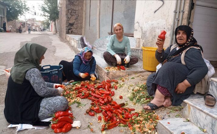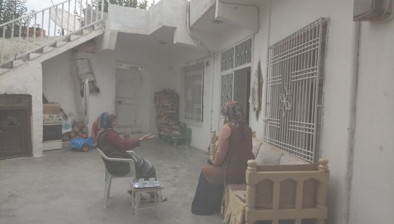 Kısa sohbetin ardından eski Siverek evlerinin sıralandığı dar sokaklardan geçerek, geniş avlusunda inek ahırının olduğu bir evde, avluya sandalye atarak oturuyoruz. Burası, tarım işçisi genç bir kadın olan Helin’in kaldığı ev. Yaşlanana dek tarım işçisi olarak çalışan ama artık eli kolu tutmayınca torun bakıp evden peksimet türü besinler üretip eve ‘katkı’ sağlamaya çalışan Makbule de sohbetimize dahil oluyor. Haberlerde en fazla sayı olarak anılan kadın işçilerin zorlu yaşamlarını konuşuyoruz.