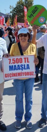 “24 Eylül mitingine gelirsek” diyor Aysel; “DİSK’in ne işçileri ne emeklileri dert ettiğini düşünüyorum. DİSK, emeklileri kullanarak işçileri bir araya getirmek istedi; ama maalesef üzülerek izledik ki büyük bir fiyasko oldu. Ne emeklinin adı doğru düzgün geçti ne kadınların adı. Ne de doğru düzgün bir işçi katılımı oldu. Eğer dertleri emekliler olsaydı, tüm emekli örgütlerine çağrı yaparlardı ve ‘birlikte nasıl yapabiliriz’i konuşurlardı. Yangından mal kaçırır gibi, sadece EYT’nin kalabalığına güvenip sadece EYT’lileri hedefleyerek bir miting düzenlemezlerdi. Hedef, büyük bir katılımla iktidara seslenmek idiyse, bunun için iyi bir çalışma ve iyi bir katılım organize etmek lazımdı. İktidar bu mitingi gördüğünde emekliyi daha da yok sayacaktır.”