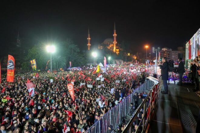 Aday olacağını açıklayan bir siyasetçinin hukuksuzca diplomasının iptal edildiği, birçok belediye başkanı ve meclis üyesinin tutuklandığı, Şişli Belediyesi’ne kayyum atandığı; halk protesto hakkını kullandığında polisin halka saldırdığı, işkenceyle gözaltına aldığı ve tutukladığı, gözaltındaki kadınlara cinsel saldırıda bulunduğu, kanallara tehditle, telefonla arayarak canlı yayın yasağının getirildiği, özgür basının susturulmaya çalışıldığı, internetin günlerce kısıtlandığı, ulaşım hakkının yok sayıldığı bir gerçeklikte adeta aklamaya çalışırcasına polis güzellemesinin yapılmasını da konuşmamız gerekiyor.