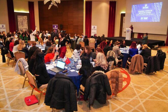 DİSK’in 7 Mart’ta yapılacak olan kadın grevinin taleplerini açıkladığı Kadın Buluşması’nda, “Eşit işe eşit ücret için, çalışma hayatındaki bütün ayrımcılıkları ortadan kaldırmak için, her gün hepimizi sarsan kadına yönelik şiddet ve kadın cinayetlerini durdurmak için, İstanbul Sözleşmesi için, ILO190’ın onaylanması için ve hiç konuşulmayan, görülmeyen evdeki bakım emeğimiz için, bakım yükünü kadınların üzerinden alacak kamusal sosyal politikalar için hep birlikte greve çıkalım” çağrısı yapıldı.
