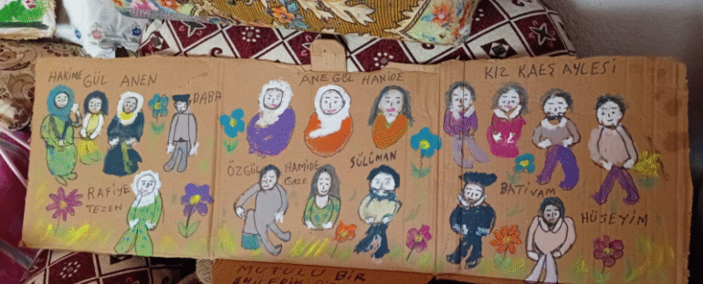 “Artık çalışmiim gari” dedikten sonra, kendini emekliye ayırmış. Köye dönmüş pek çok emeklinin yaptığı gibi. “Büyüklerin hepsi öldü. Annem, teyzem, halam, kimsem yok. Yalnız kaldım. Evlatlar büyüdü hepsi şehirde. Gecelerimi değerlendireyim derken, resim yapmaya başladım. Evlatların kimi mimar, kimi mühendis. Mimar mı, mühendis mi olan çizerken yanlış çizdiği kağıtları bana getirmeye başladı. Onlara yaptım resim” diye anlatıyor resme başlamasını…