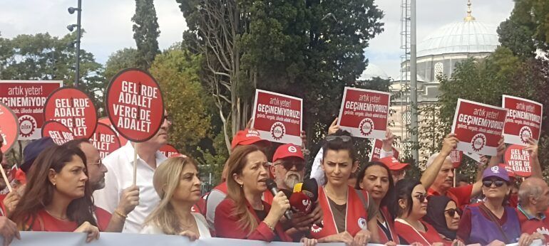 MESS ile işçi sendikaları arasındaki TİS sürecine dair sohbet ederken, işçi maaşlarının 90 ila 100 bin bandında olması gerektiğini söyleyen Ezgi, vergide adalet olmadığı durumda hiçbir maaş zammının anlamı olmayacağının da altını çiziyor. Ardından, üye olduğu sendika dahil, işçi sendikalarının kadın işçilerin sözlerini ve taleplerini TİS masasına ne kadar götürdüğü üzerine konuşuyoruz Ezgi’yle.