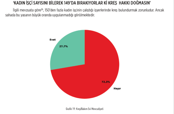 Bu sözler, fabrikalarda uzun mücadelelerle kazandıkları kreş hakkı, kreşlerin ücretlerinin işveren tarafından ödenmesinin sağlandığı, kadın işçinin çocuğunun işe girdiği andan itibaren kreşe kabul edildiği kazanımlar sayesinde söylenebiliyor.